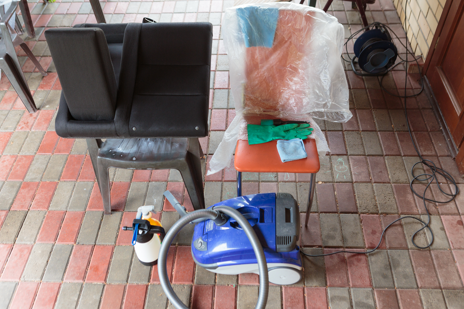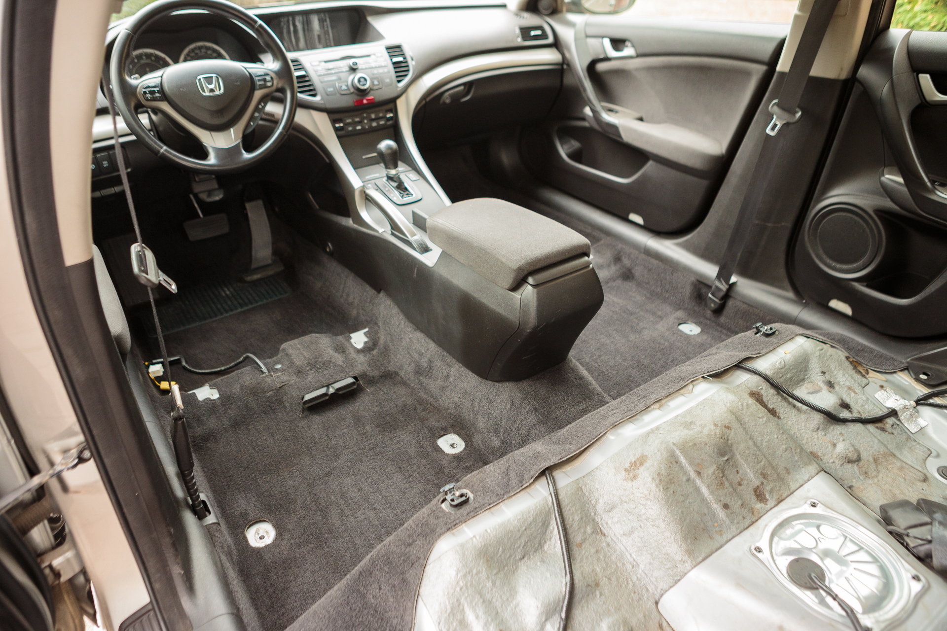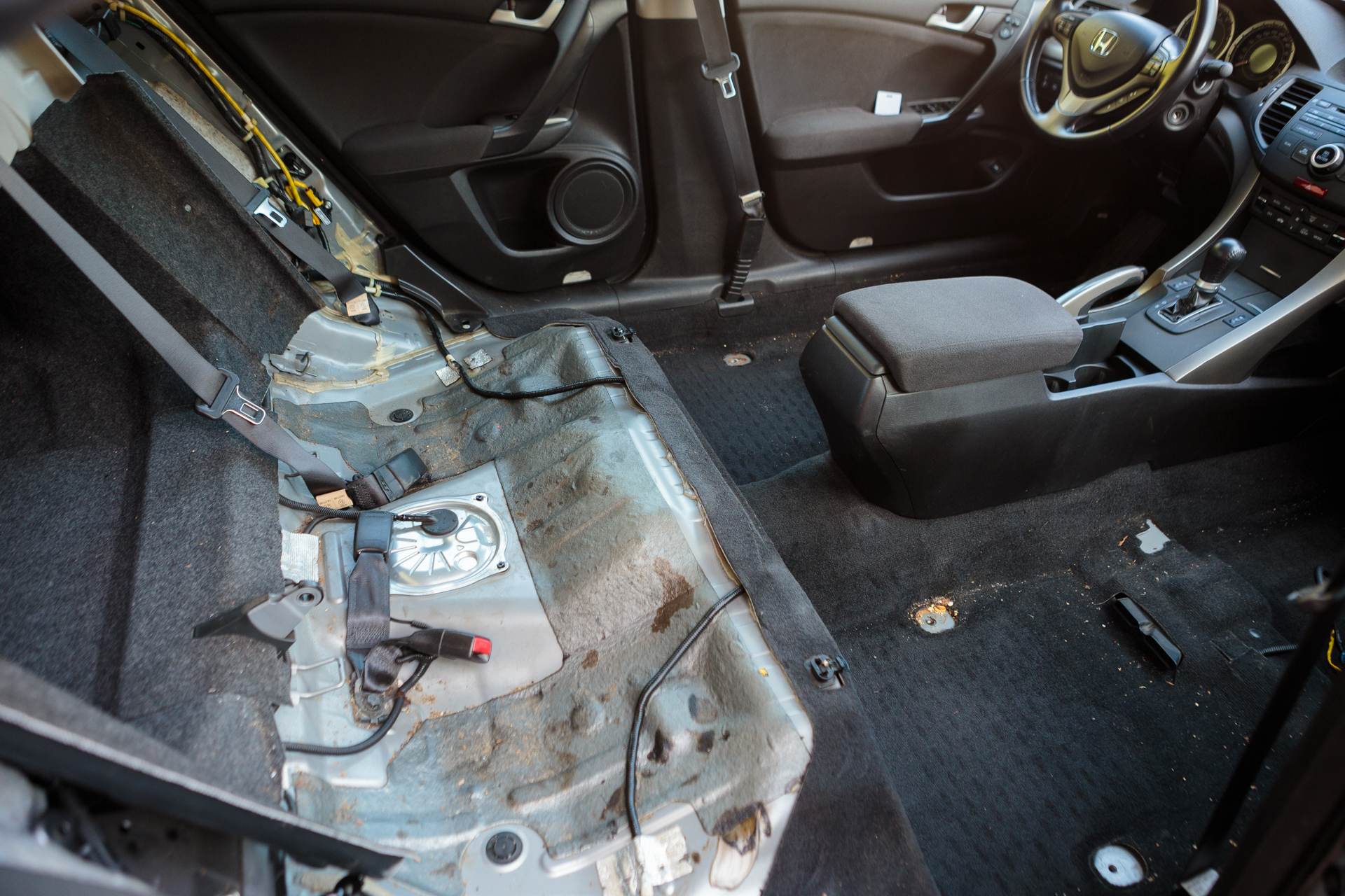 After cleaning the front seats, the water was slightly muddy. In contrast, it seems the rear row had hardly ever been cleaned.