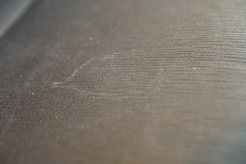 - Apply dry foam followed by mechanical cleaning with a brush having soft bristles. Do not press too hard. Brush along the grain if one is visible, otherwise use circular motions